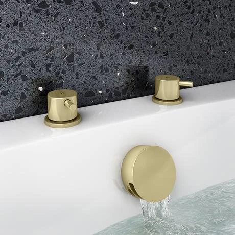 The Contemporary Arezzo brushed brass deck mounted side valves feature a stylish round design with levers, these side valves have been designed for baths with two tap holes. Ideal for use with a combined bath filler waste (sold separately).
