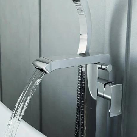 A stunning tap featuring a bold spout and arched contours, the Descent Floor Standing Bath Shower Mixer is ideal for any contemporary bathroom. The taps true quality is reflected in its brass constructed body and superior chrome finish. Bristan offer a 10 year guarantee covering manufacturing faults.
