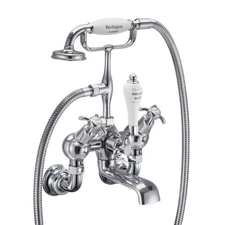 This Wall mounted angled Mixer comes with a “S Adjuster” so the shower handset can be mounted in a choice of two positions, images of both are available.