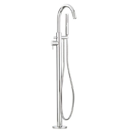 The Design Floor Mounted Freestanding Bath Shower Mixer from Crosswater combines a stylish lever design together with ease of use. This tap features a sleek, round body and curved spout, complemented by a matching round lever handle incorporating ceramic disc valve technology. Suitable for high pressure systems of 3 bar and above. Manufactured from solid brass and comes with a 15 year guarantee from Crosswater.