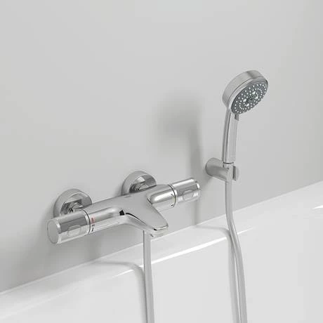 The Grohe Precision Feel Thermostatic Bath Mixer 1/2″ is the perfect upgrade to the comfort of thermostatic Bathing. GROHE CoolTouch technology ensures that the entire outer surface never exceeds your preferred Bath temperature. This safety measure is especially useful for children, who can not always judge whether something they touch is dangerously hot. GROHE EcoJoy reduces water and energy consumption – and when you need a full flow just press the EcoButton to release the handle.