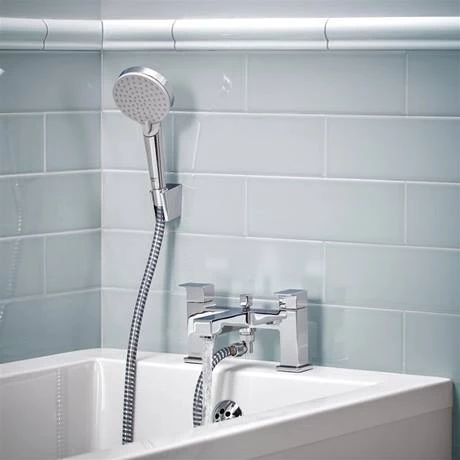 The geometric Vernis Shape variant, with its precise edges, stands for a visually striking look. This bath shower mixer with kit offers an economical way of adding designer elegance to your bathroom. Consists of deck mounted bath shower mixer tap, Vernis Blend Vario hand shower, shower holder and shower hose.