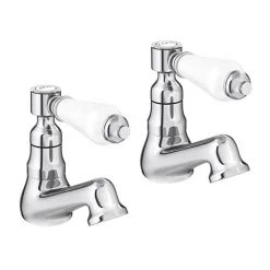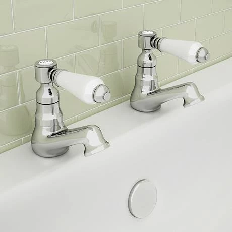The classic Lancaster traditional bath taps, part of our range of traditional bathroom taps with it’s elegant spout design and expertly crafted white ceramic lever handles, it’s classic design will bring a touch of sophistication to your bathroom. Manufactured from solid brass with a stunning chrome finish.