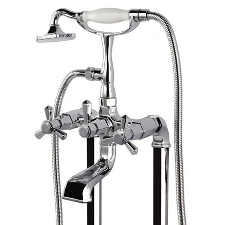 Influenced by the Art Deco era, this RAK Washington Bath Shower Mixer adds a glamorous appeal to any bathroom. Made from high quality brass, the tap is beautifully finished in polished chrome and features twin crosshead handles. Suitable for high pressure water systems only. Includes shower handset and hose.